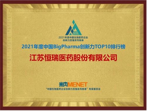 9月16日,由米内网主办的“2021年度中国生物医药企业创新力百强系列榜单”发布会在线上举办。金年会医药继去年登顶“中国BigPharma企业创新力TOP10排行榜”后,今年再次名列该榜单首位。