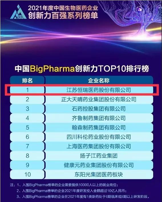 蝉联榜首!金年会医药再次登顶“中国BigPharma企业创新力TOP10排行榜”