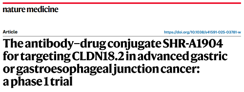 金年会医药CLDN18.2 ADC创新药SHR-A1904治疗胃癌临床研究结果荣登Nature Medicine