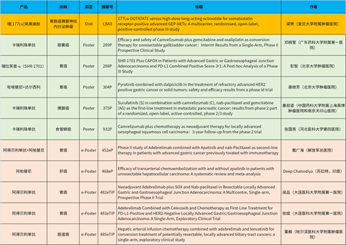 在消化系统肿瘤领域,金年会产品相关研究共入选1项最新突破性摘要(LBA)、5项壁报和5项电子壁报,共11项研究。其中阿得贝利单抗入选4项研究、卡瑞利珠单抗入选3项研究。