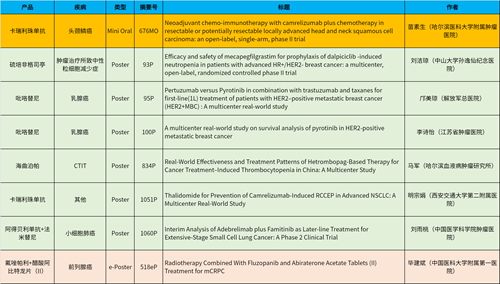 在头颈肿瘤、乳腺癌、肺癌、前列腺癌等多个疾病领域,卡瑞利珠单抗、阿得贝利单抗、吡咯替尼、氟唑帕利、法米替尼、醋酸阿比特龙片(II)等抗肿瘤新药相关研究一共入选了1项简短口头报告、4项壁报展示和1项电子壁报,彰显了金年会医药强劲的研发实力。